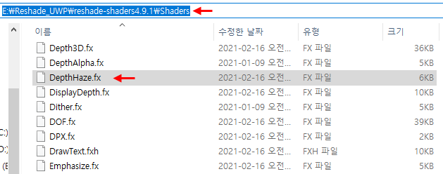 참고로 reshade-shaders4.9.1폴더 안에 모든 fx파일은 덤이니 쓰고 싶은 옵션만 골라 사용해