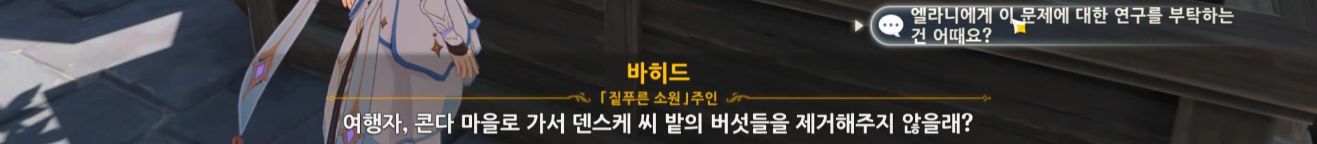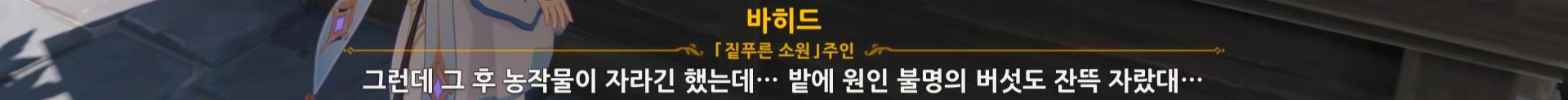 버섯을 끼쳐서 죄송! 일일 퀘스트 이나즈마 판매원 공략 티바트 심부름꾼 멈춰! 업적 버섯을 끼쳐서 죄송! 공략 의외로 간단하다. 바히드가 중간에 파란색으로 말하는 것이 정답인데 ★