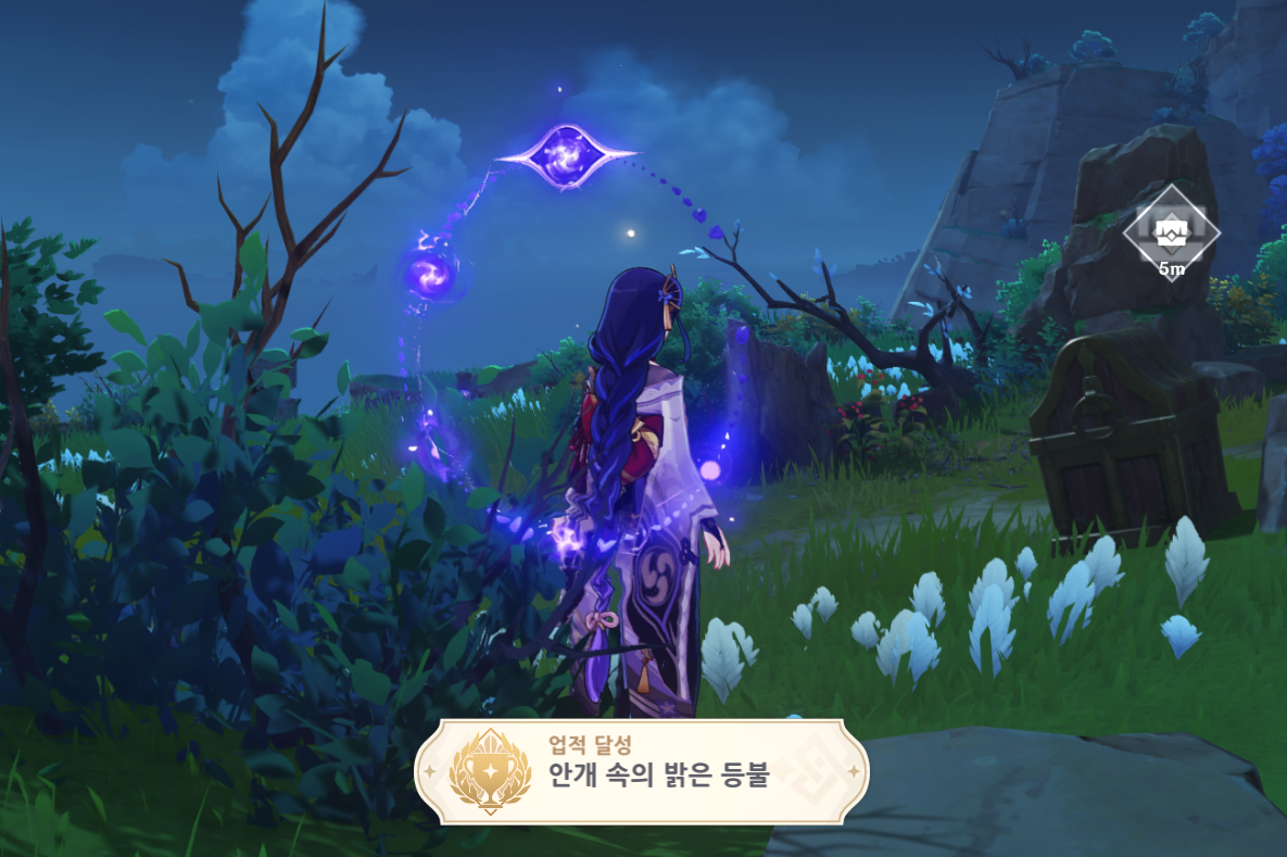아우타케 들판에 등장한 NPC 치세와 대화 후, 필드 위에 있는 번개등불을 밝혀주면 됨.