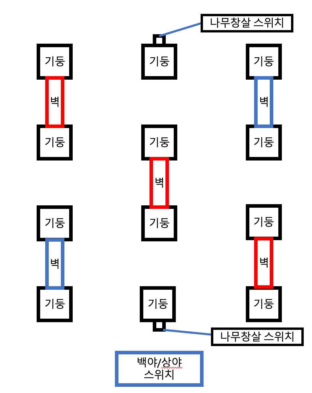 3시 방향과 9시 방향에 각각 벽을 움직일 수 있는 스위치가 있다.
