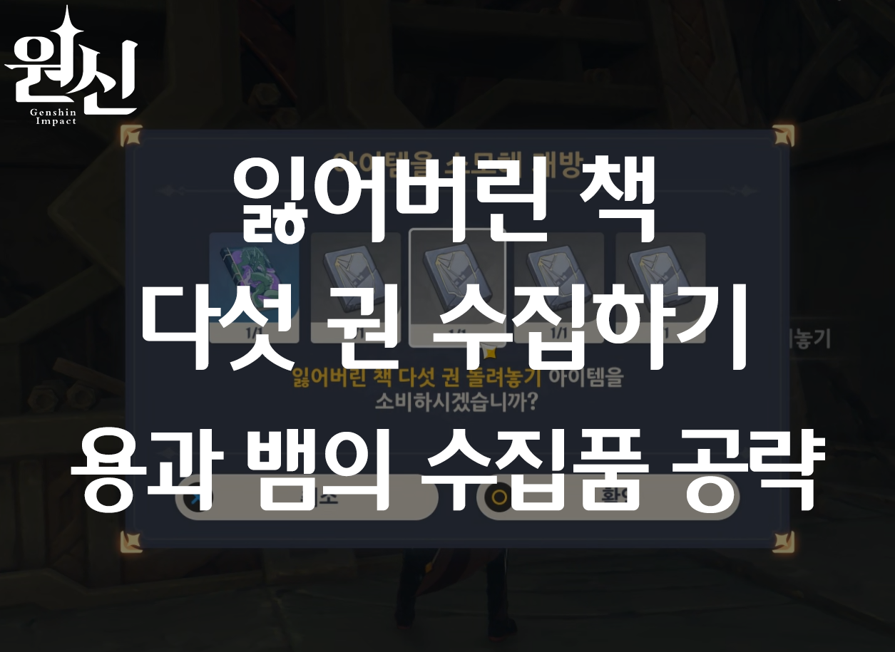 원신 월드 임무 잃어버린 책 다섯 권 수집하기 / 용과 뱀의 수집품 공략