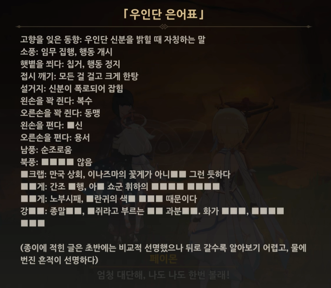 원신 월드 임무 종말번대의 임무 스파이 은어 대화 정답