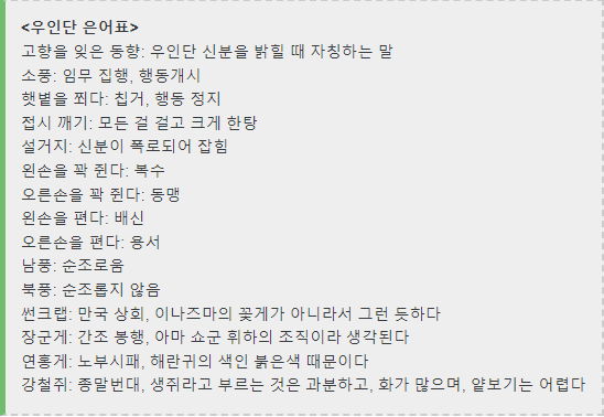 우인단 스파이 은어 대화 정답