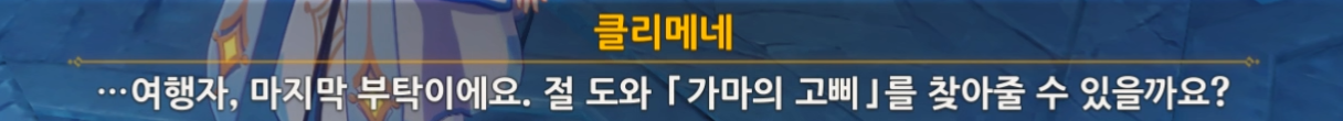 클레메네와 대화를 하면 가마의 고삐를 찾아달라고 하는데