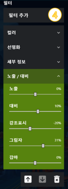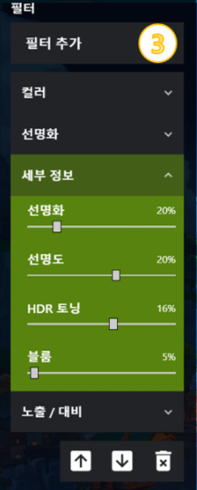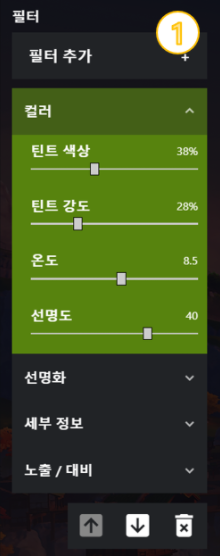 필터를 끄고 싶을 때는 필터1로 설정된걸 삭제하거나 다른 필터 2, 3을 적용해서 끄면 된다.
