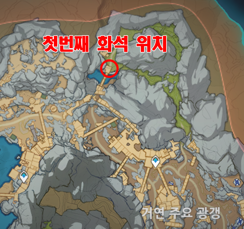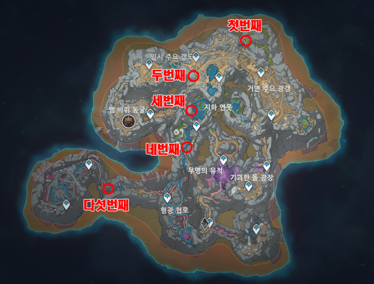 원신 층암거연 지하 광구 화석 5곳 위치 / 헤디브 이상한 돌 퀘스트