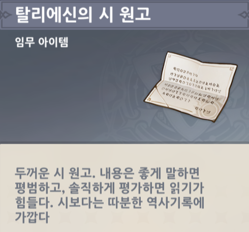 | 원신 히든업적 경험에서 비롯된 문장 (0) | 2022.04.05 |