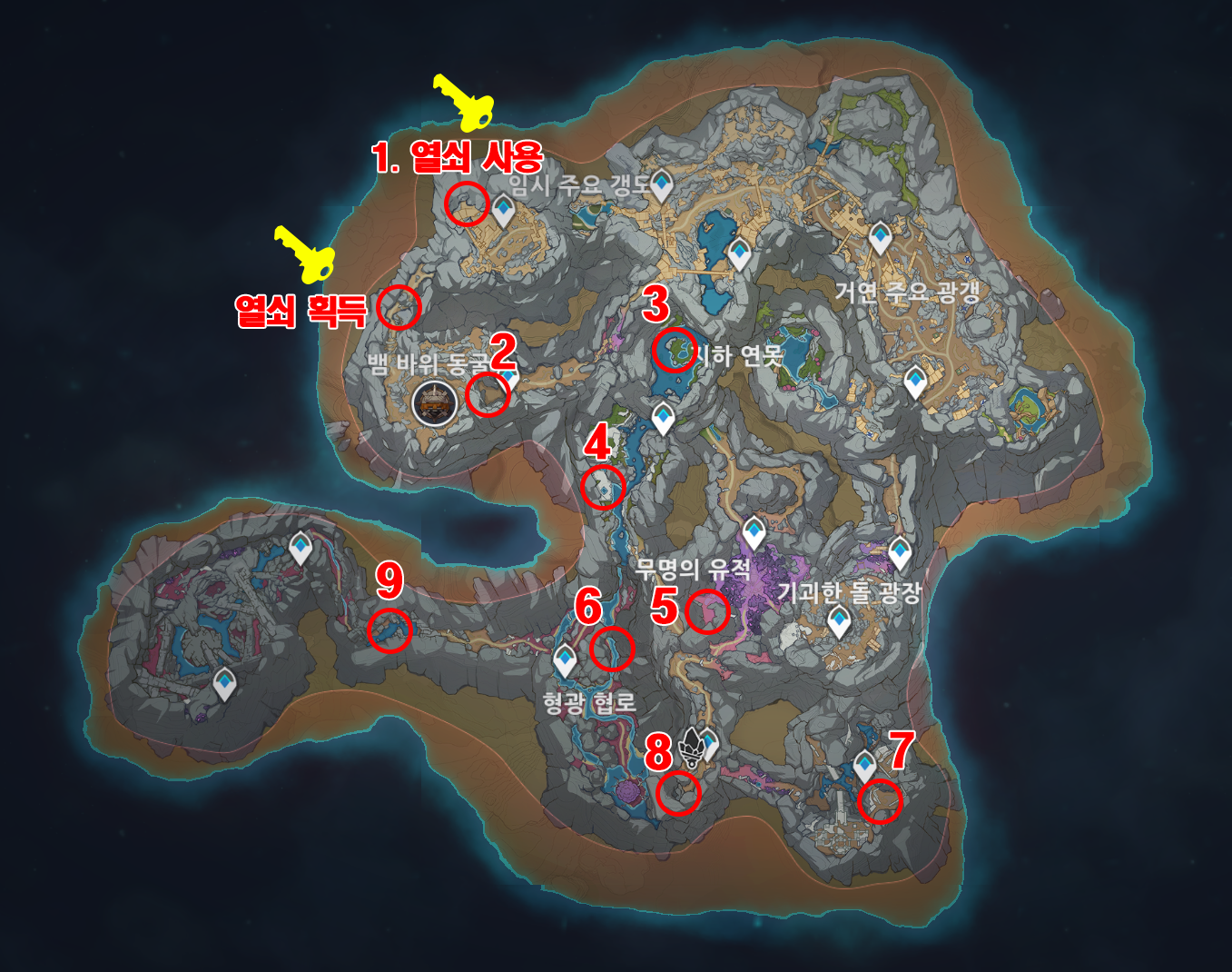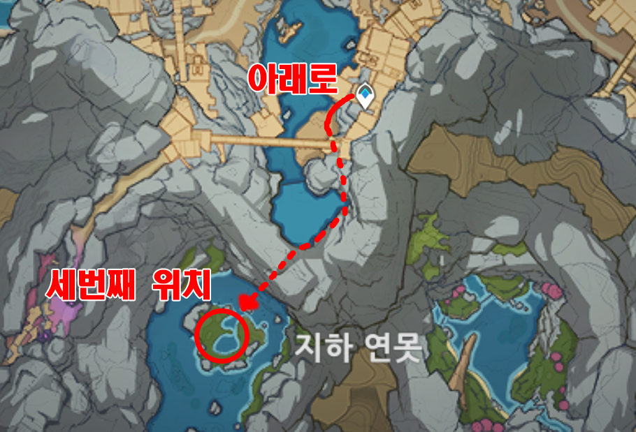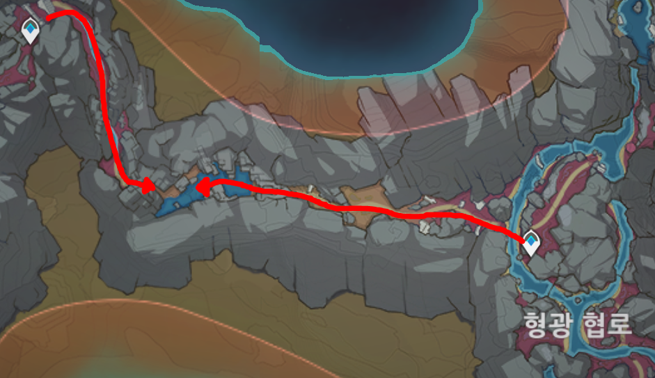 원신 층암거연 지하 광구 암흑의 빈 갑주 위치 / 흑 뱀 기사 위치 / 푸른 심연의 보주 9개 위치