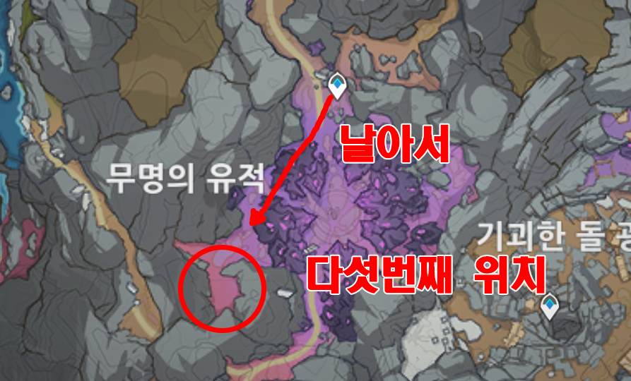 원신 층암거연 지하 광구 화석 5곳 위치 / 헤디브 이상한 돌 퀘스트