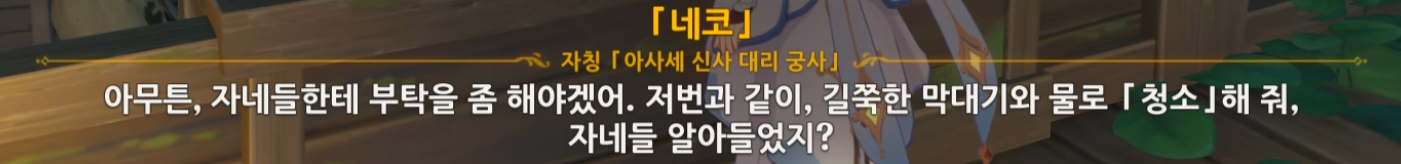 원신 히든업적 그녀와 그녀의 고양이 일일퀘스트 신사대청소 -물청소-