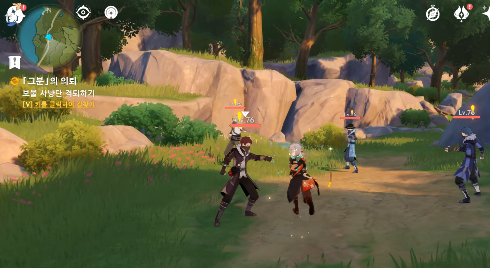 몬드성 오른쪽 속삭임의 숲에서 보물사냥단을 잡고