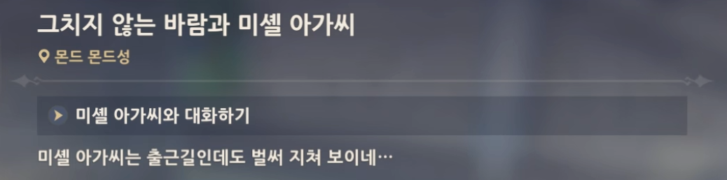 원신 일일퀘스트 그치지 않는 바람과 미셸 아가씨