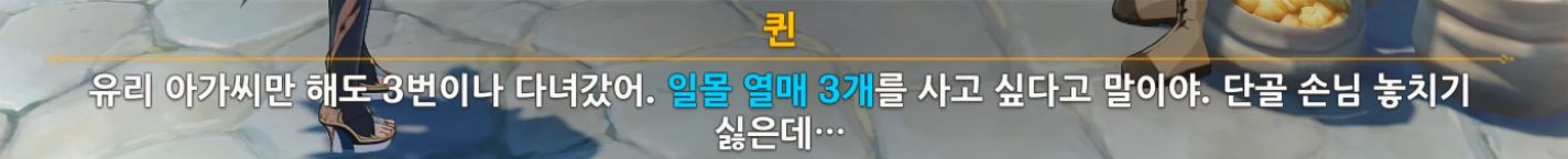 일몰 열매 3개를 말하고 가져와달라고 말한다.