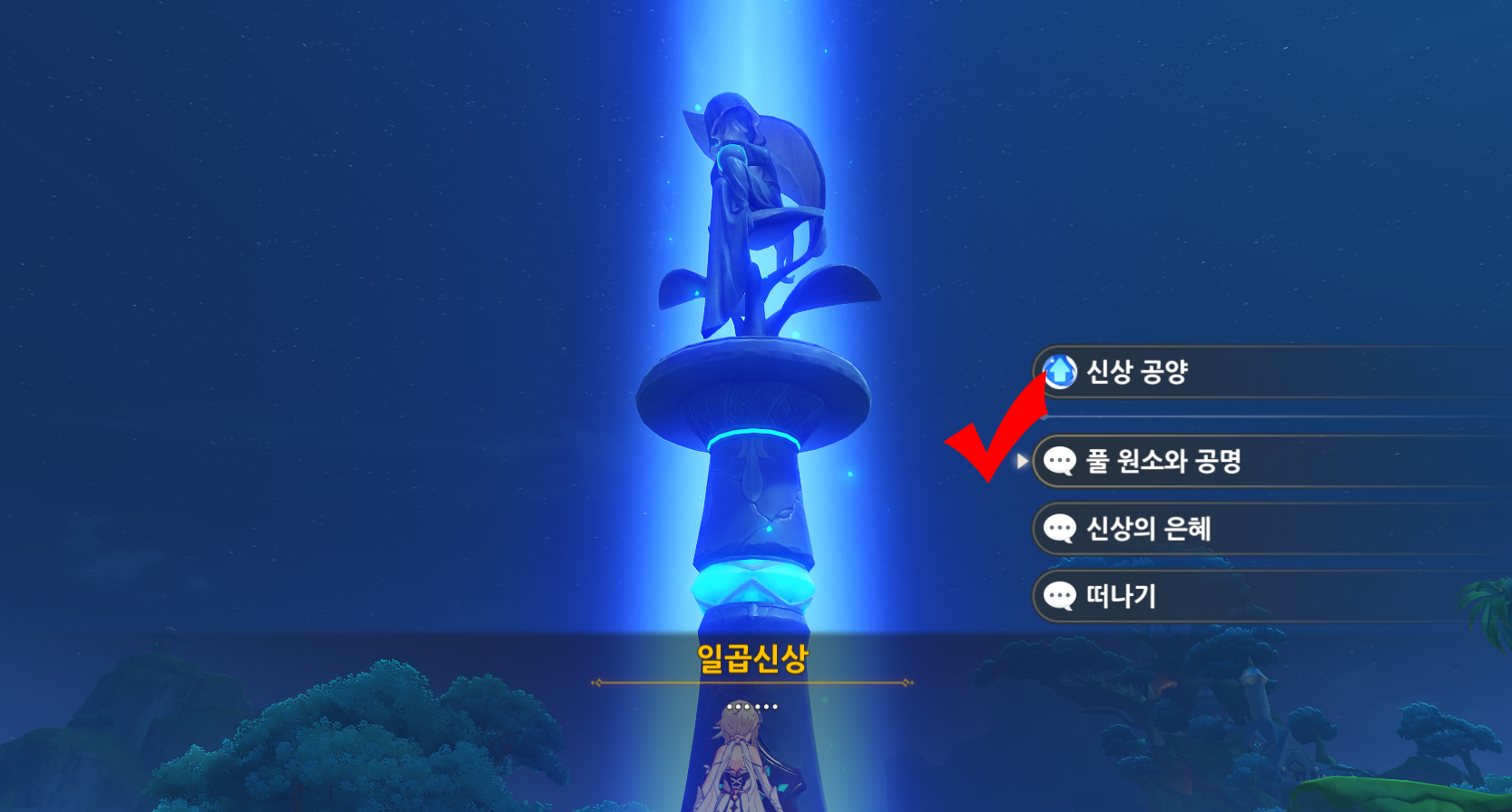 풀의 신의 신상으로 풀 원소와 공명