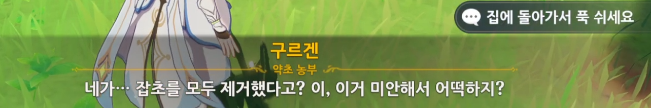 ★ 약을 가져다주고 한 번 더 말을 걸어서 아이템을 주거나 잡초를 없애면 됨. ★