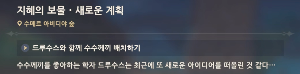 원신 월드퀘스트 지혜의 보물 · 새로운 계획 수메르 평판 퀘스트