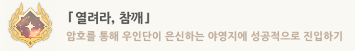 암호를 통해 우인단이 은신하는 야영지에 성공적으로 진입하기