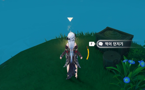 그 후 페이몬이 언덕에서 고기를 던지자고 함.